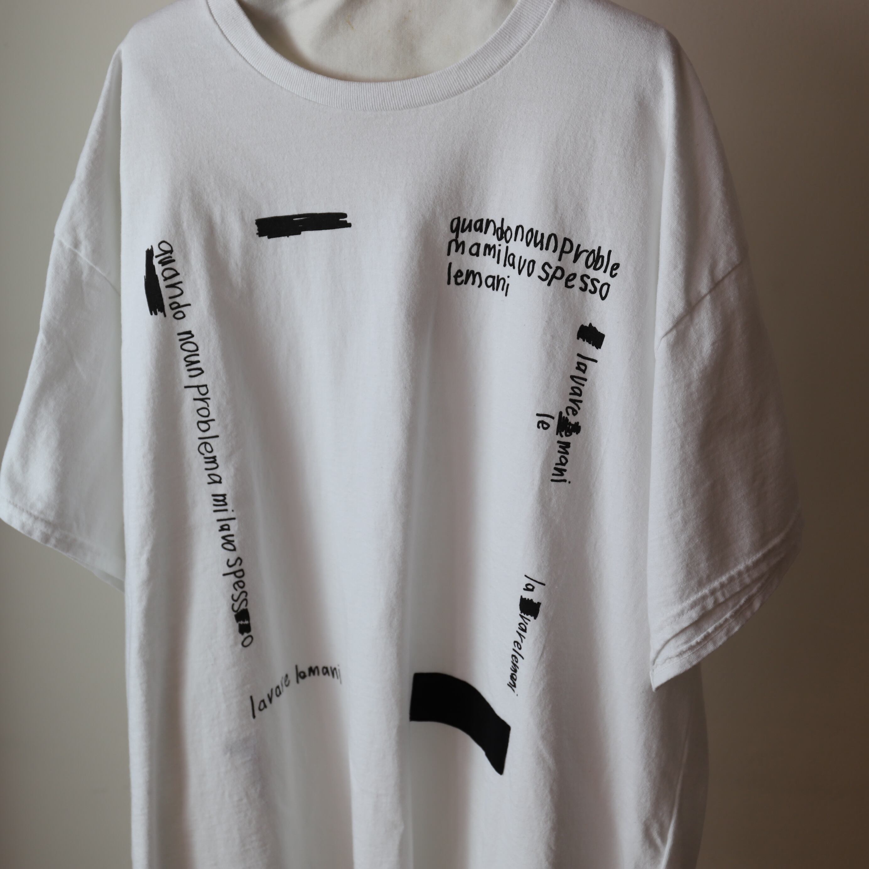 ARTE PORVERA / ギルダン RE- lavare le mani プリントT / white