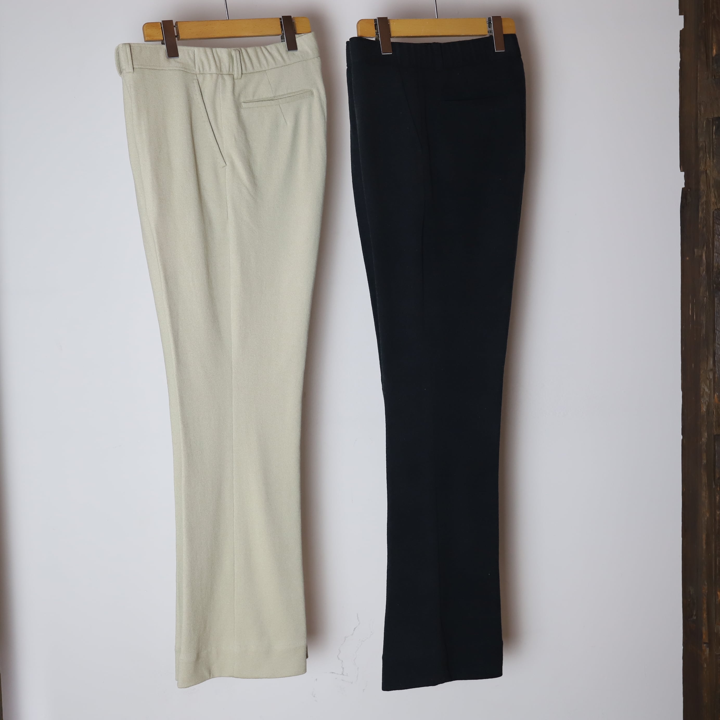 生地の特性上、着用による寸法変化があるため、レングスの調整はある程度着用を進めた上でご検討ください。