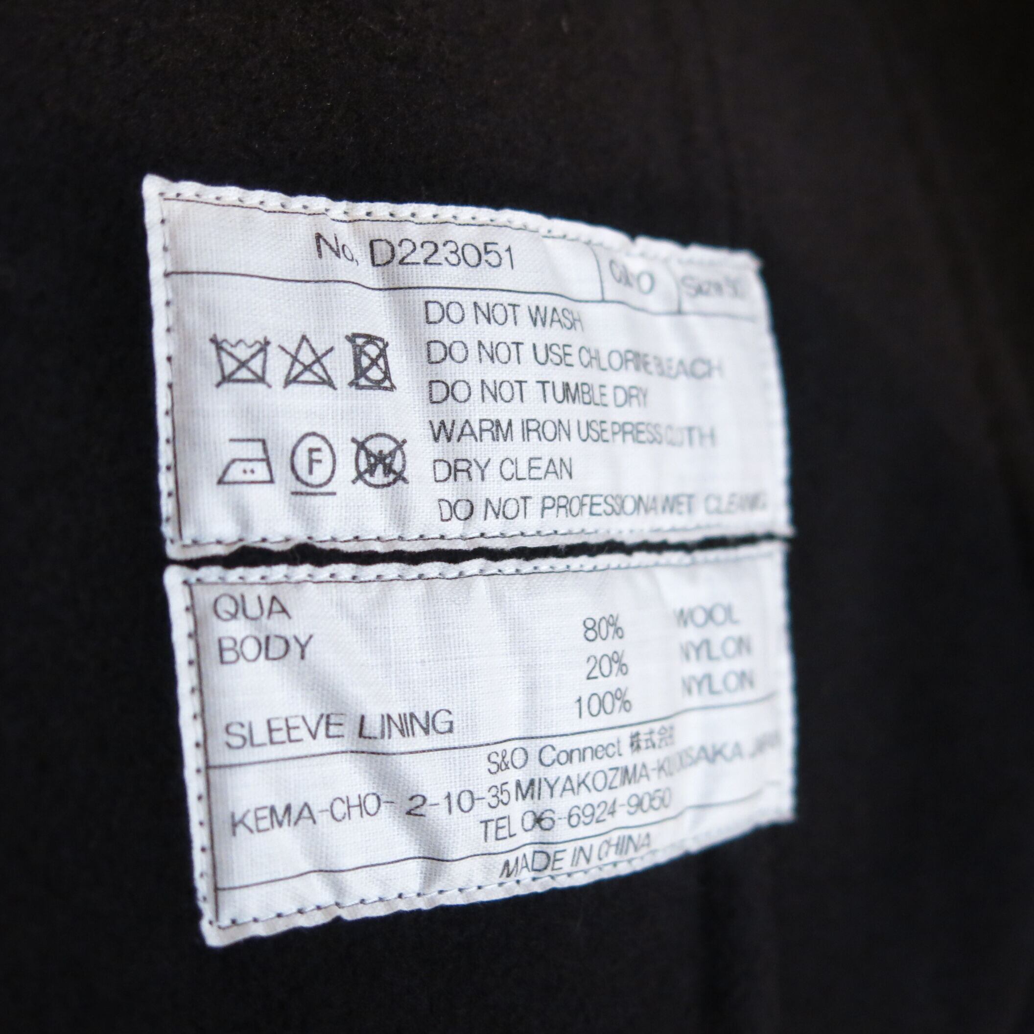 【素材】表地ウール80%ナイロン20%袖裏ナイロン100%