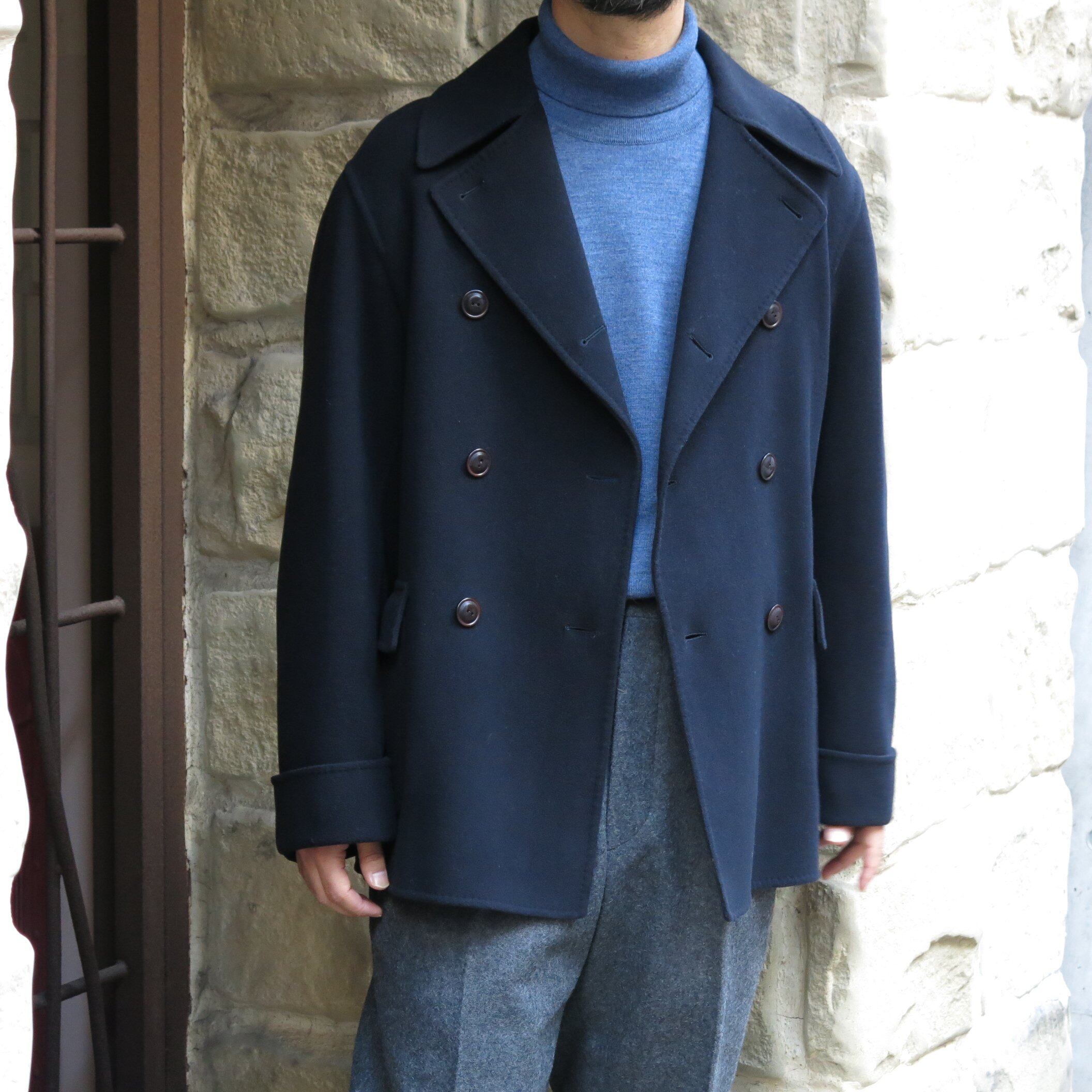 D.C.WHITEのリーファージャケットは、コートとダブルのジャケットの良いとこ取りしたような美しいパターンと、カシミアのように軽くて滑らかなダブルフェイスのメルトンを、毛抜き合わせのほぼ手縫いで仕立て、今までにない着心地を実現しています。